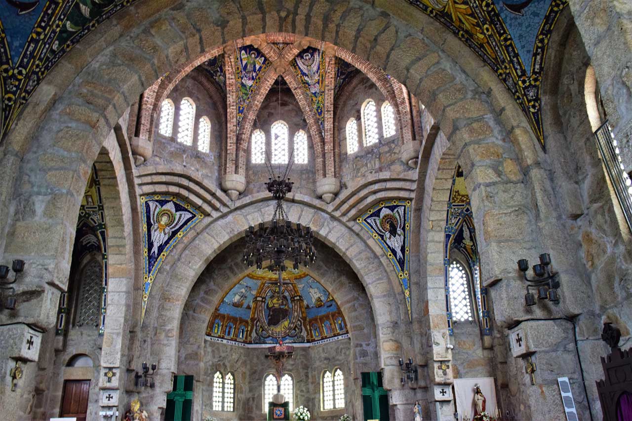 El Templo Votivo del Mar es una de las obras cúlmenes del arquitecto porriñés y una de las mejores obras que se conservan en el Val Miñor.