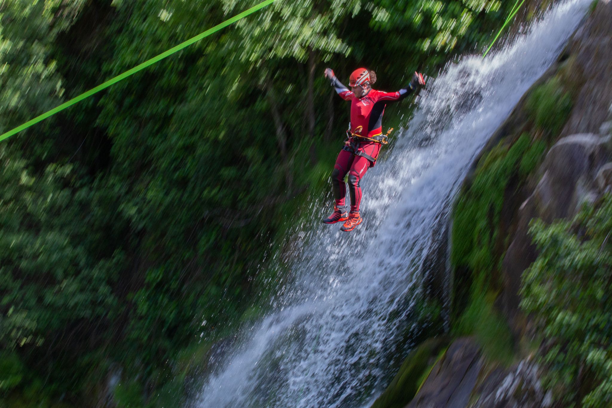 Barranquismo: traje de neopreno y botas específicas para barranquismo; arnés casco